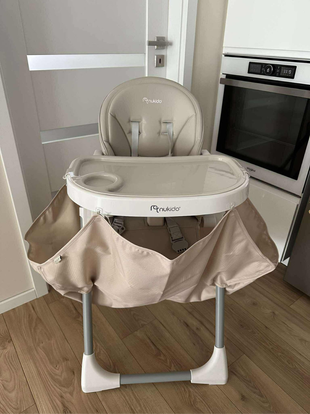 Idealnie sprawdzi się przy rozszerzaniu diety BLW i wyłapie spadające z krzesełka przedmioty, jedzenie.