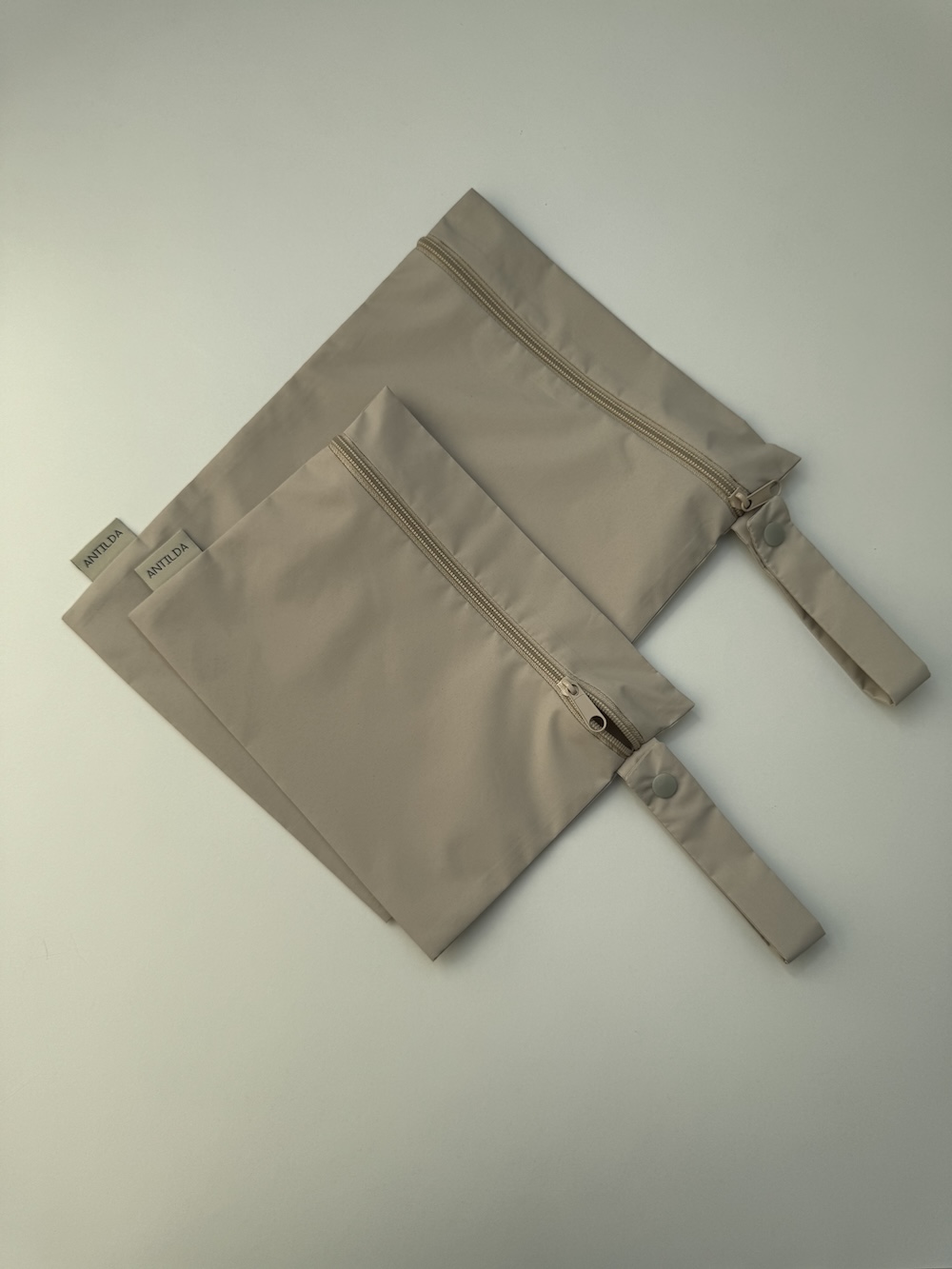 Wodoodporny materiał sprawia, że nadają się do mokrych rzeczy. Zapinane są na zamek błyskawiczny.